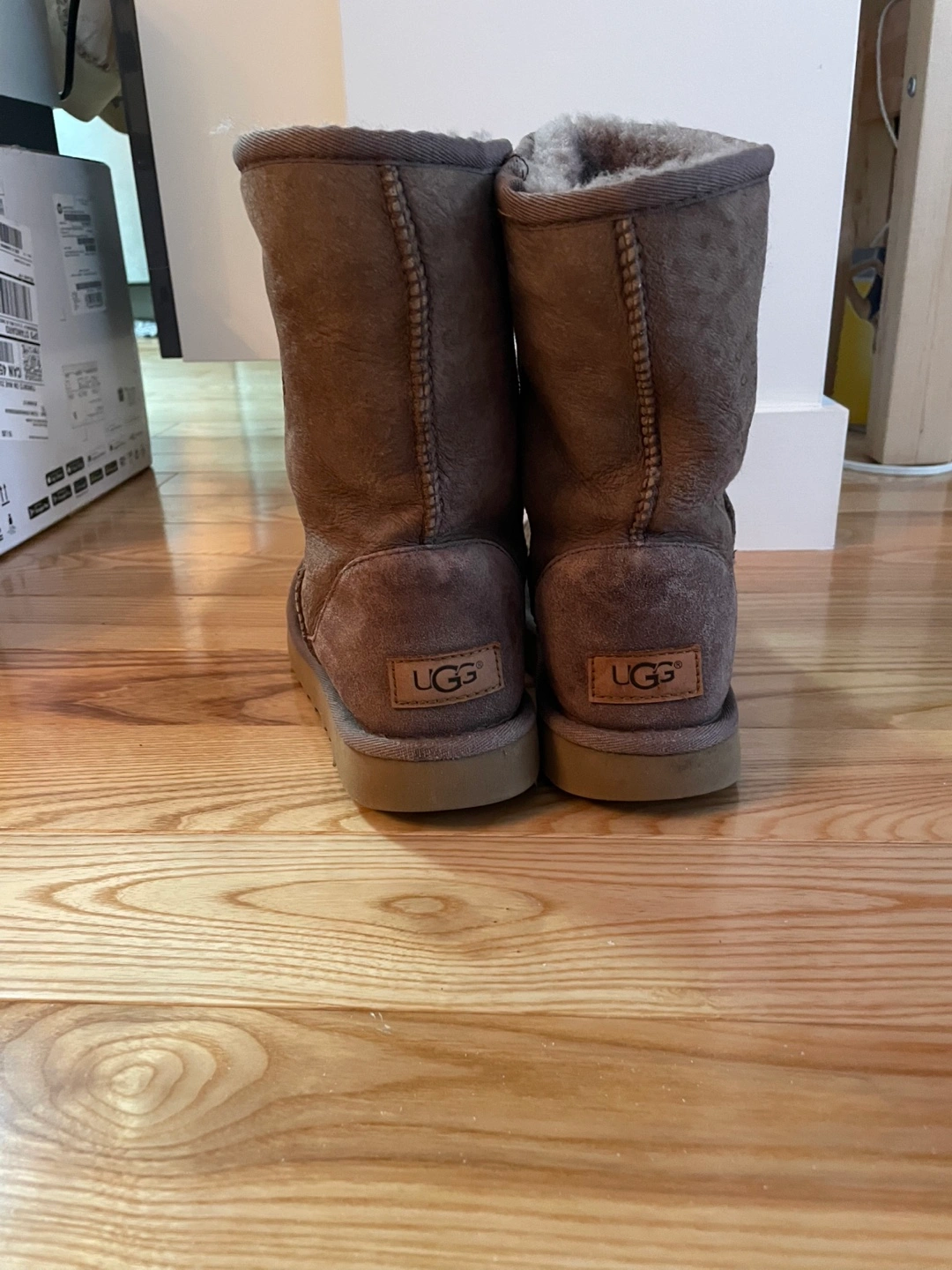Classic UGG boots in a taupe colour. They're made with genuine sheepskin for ultimate comfort and warmth. These boots are in relived condition in a women's size 7.