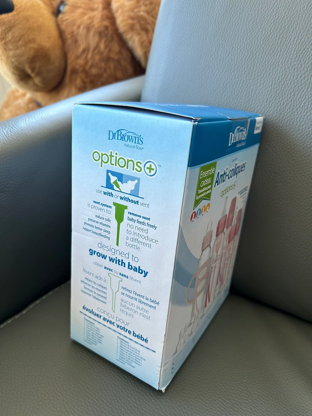 • 2 – 4 oz/120 ml Dr. Brown’s® Options+™ Bottles clinically proven to reduce colic