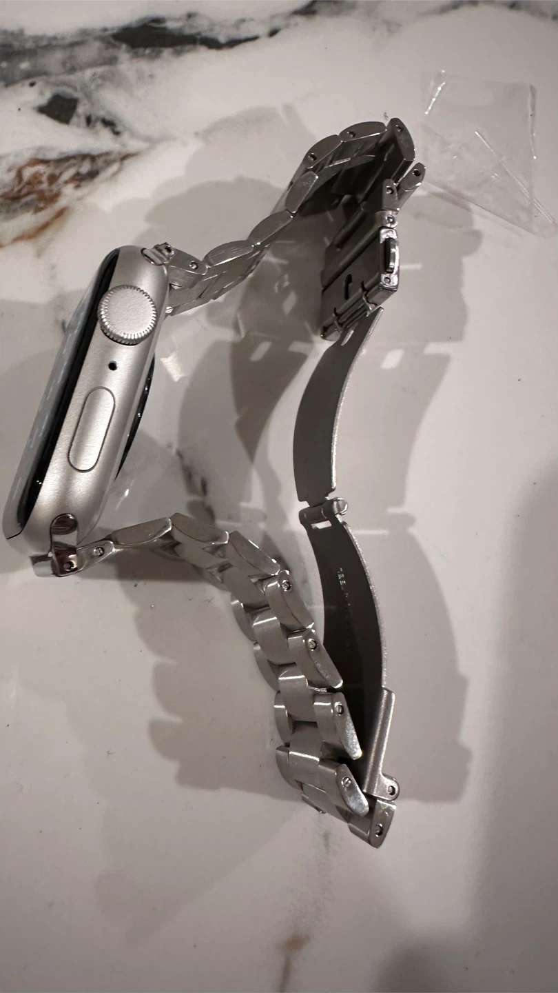 Selling a brand new stainless steel Apple Watch band! It's compatible with 42mm, 44mm, and 45mm Apple Watches. Comes with the original box and all included components.