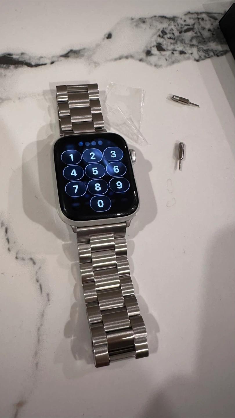 Selling a brand new stainless steel Apple Watch band! It's compatible with 42mm, 44mm, and 45mm Apple Watches. Comes with the original box and all included components.