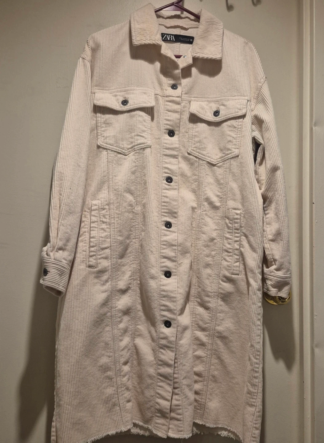 Cream coloured ZARA corduroy long shirt dress. It's a size medium with button-up front and two chest pockets. Made of 100% cotton. Can be used as a shacket or button up dress , never been worn , oversized.