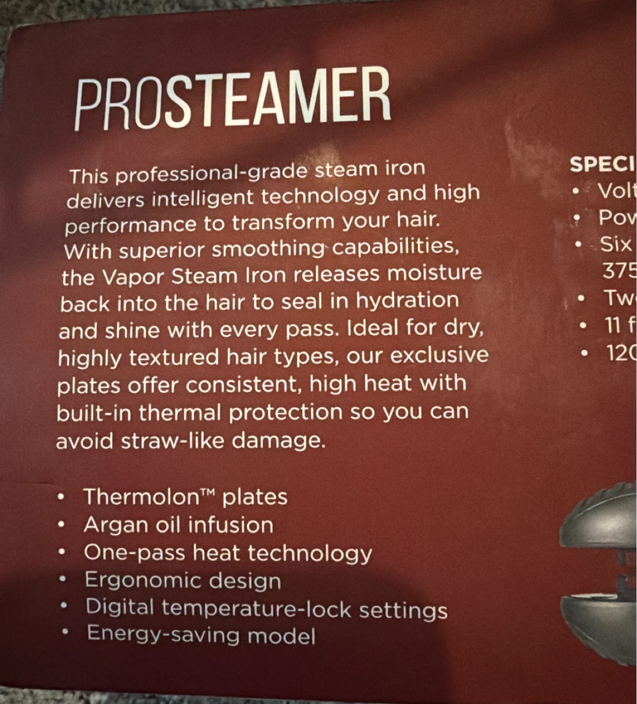 Pro steamer, professional iron to transform your hair. Smoothing capabilities with vapour steam, that releases moisture back into the hair to seal in hydration and shine.