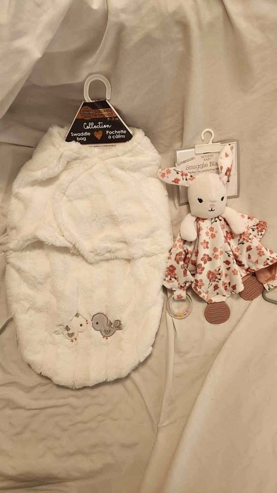 Baby shower gift - faux fur cozy swaddle + bunny lovey