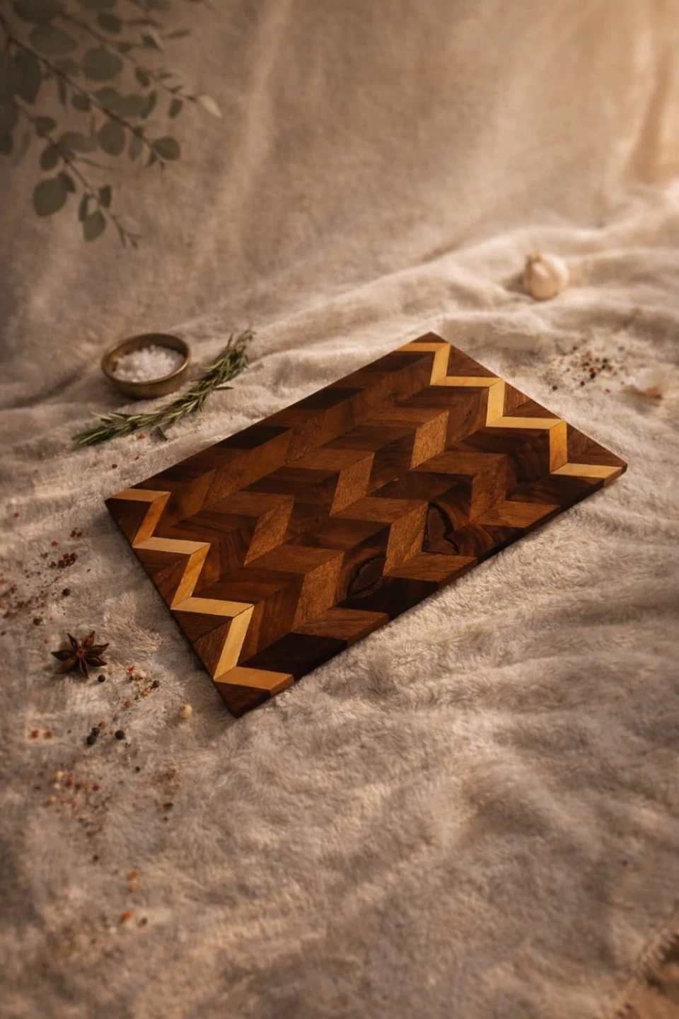 Beautiful wood cutting board with a stylish chevron pattern. It's perfect for adding a touch of elegance to your kitchen while being functional for all your chopping needs
