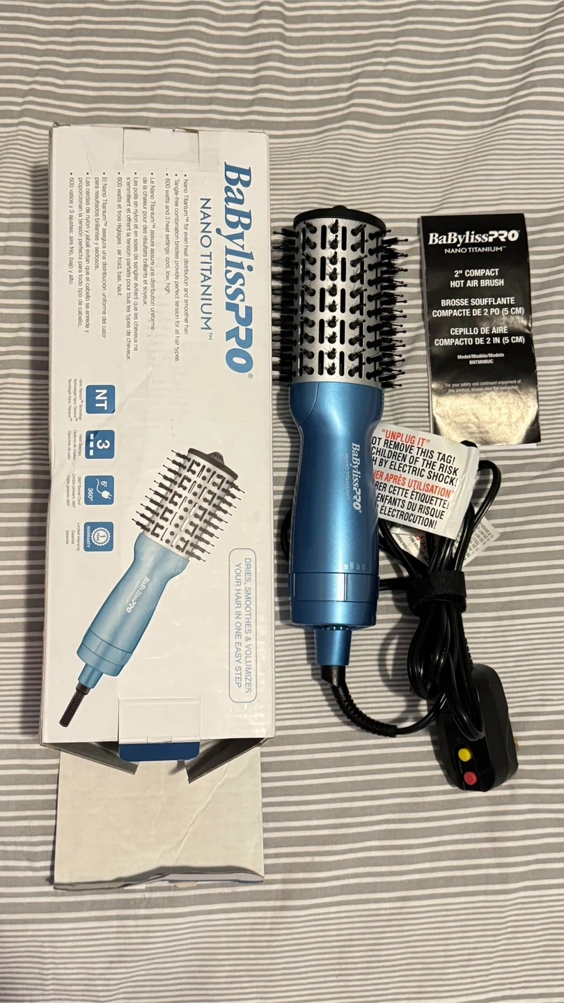 This BaBylissPRO Nano Titanium hot air brush features a 2-inch barrel and Ion Technology for smooth results. It offers multiple heat and speed settings with a cool shot option. Get salon-quality blowouts at home!