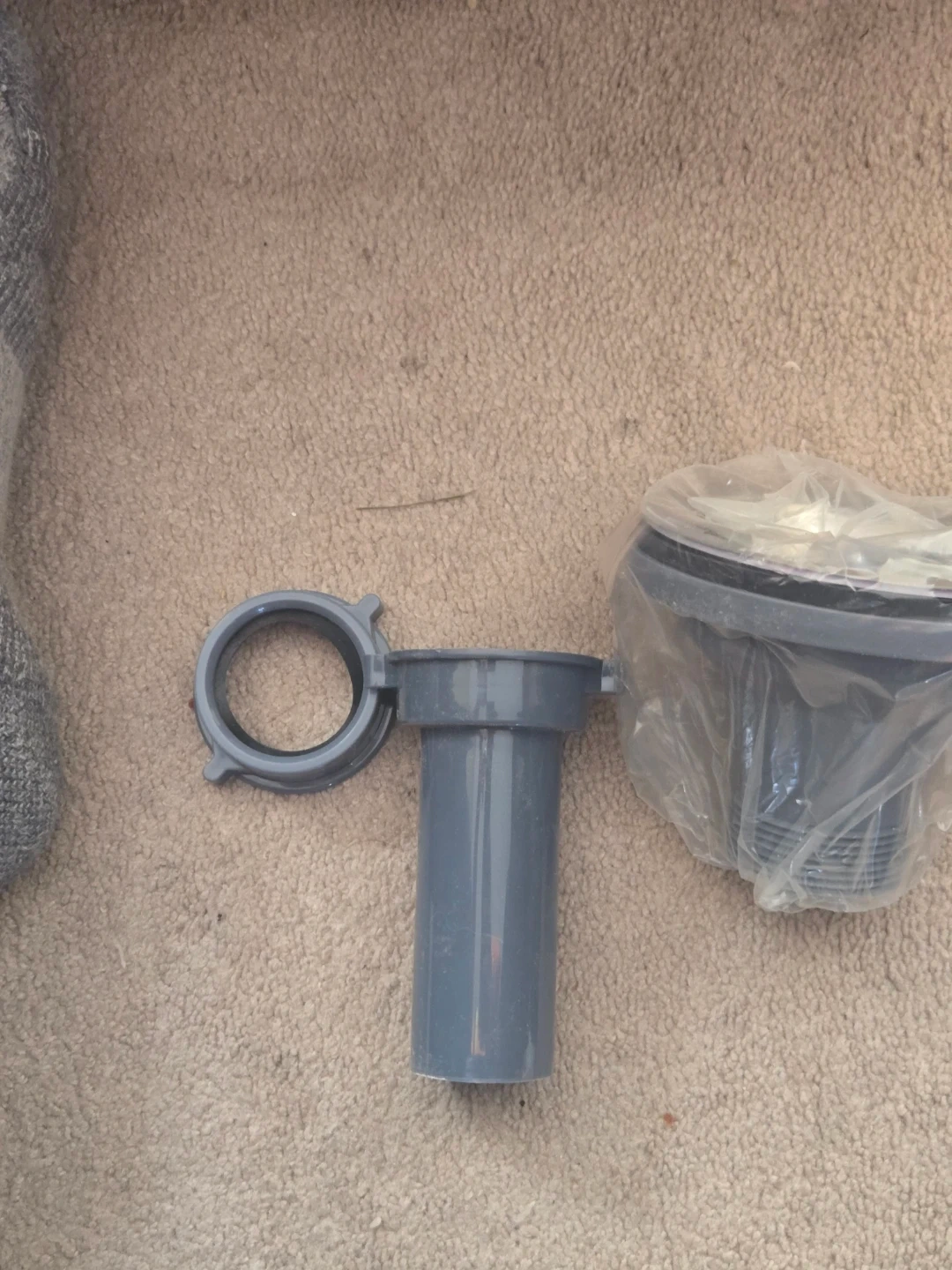 This is a sink strainer and drain assembly. It's made of metal and plastic components. The assembly includes the strainer basket and the connecting drain pipe.