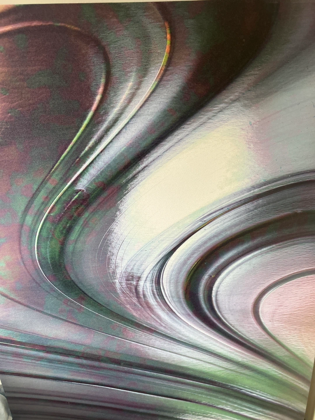 Large abstract canvas art print with a dynamic swirl design. Features metallic and iridescent tones. Ready to hang on your wall! Length is about 5 feet. Pick up only! Price is negotiable!!