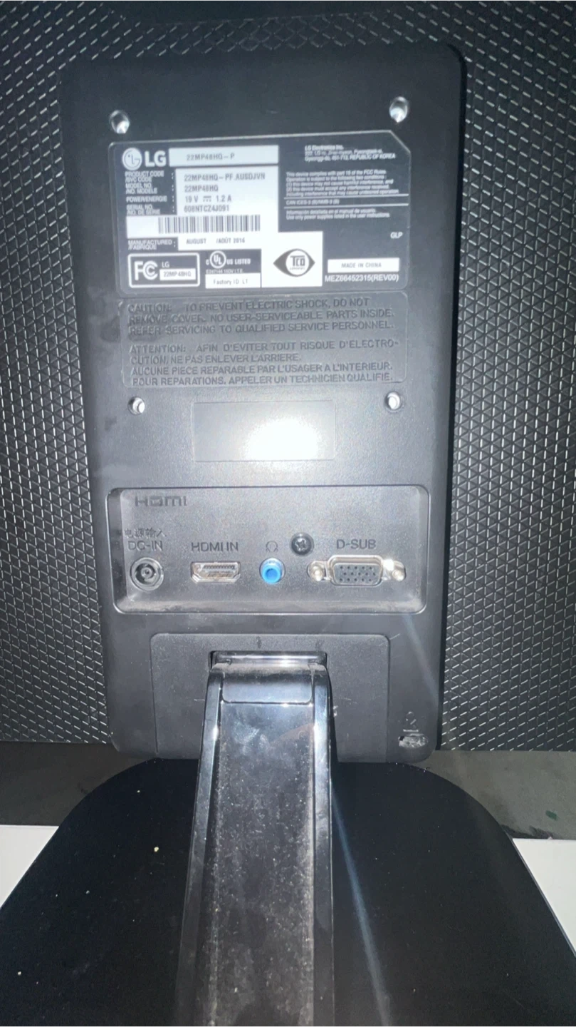 Buy & SellLG 22MP48HQ-P MonitorLG 22MP48HQ-P Monitor$29LG 22MP48HQ-P monitor. It's a 22-inch display. Inputs include HDMI, DVI-D, and D-Sub. Comes with a power adapter.ConditionGoodBrandLGWHERE TO MEETCheck LocationView MapSELLERJoseCottonwood100 reviews0 chats·0 favorites·6 viewsSEND CHAT TO SELLERHi Jose! I’m interested in your listing.Hi Jose! I’m interested in your listing.Get the Karrot app to chatSign In to chat