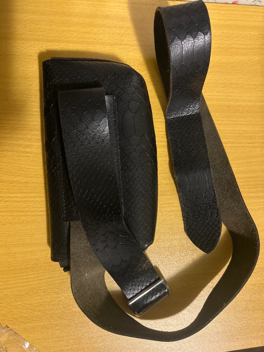 Black Faux Snakeskin Belt Bag with Strap