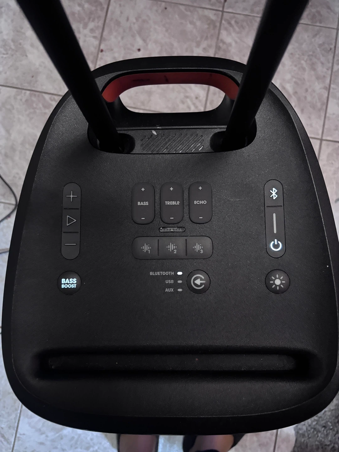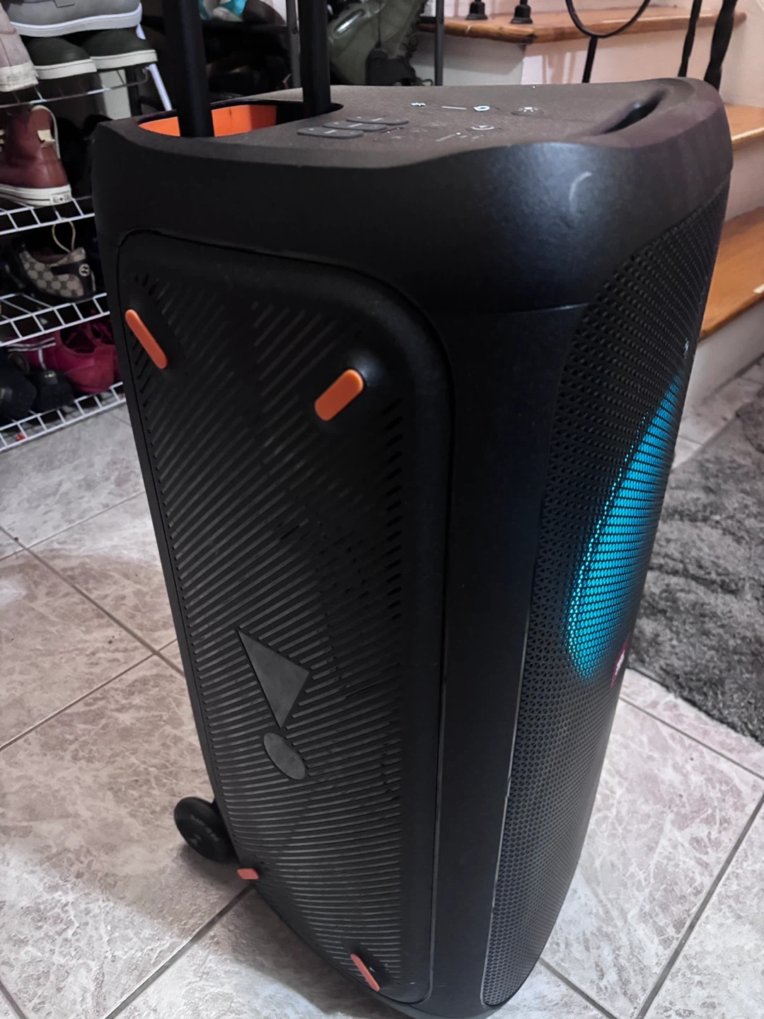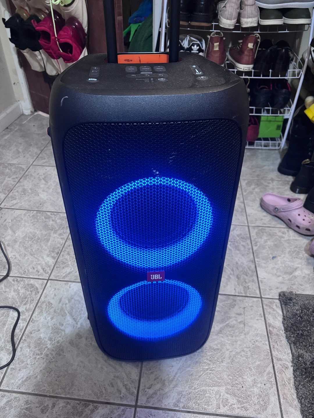 Selling a JBL PartyBox 310 This portable speaker is perfect for parties or just enjoying music at home. It features bass boost, Bluetooth connectivity, and USB/AUX inputs. It also has a telescopic handle and wheels for easy transport