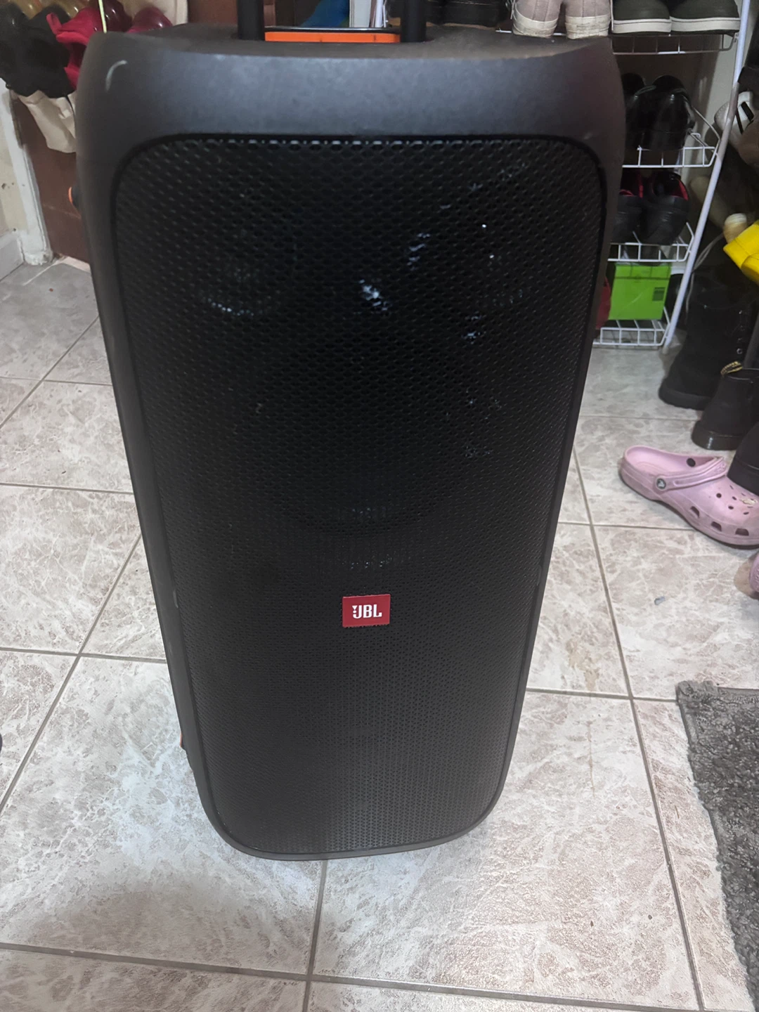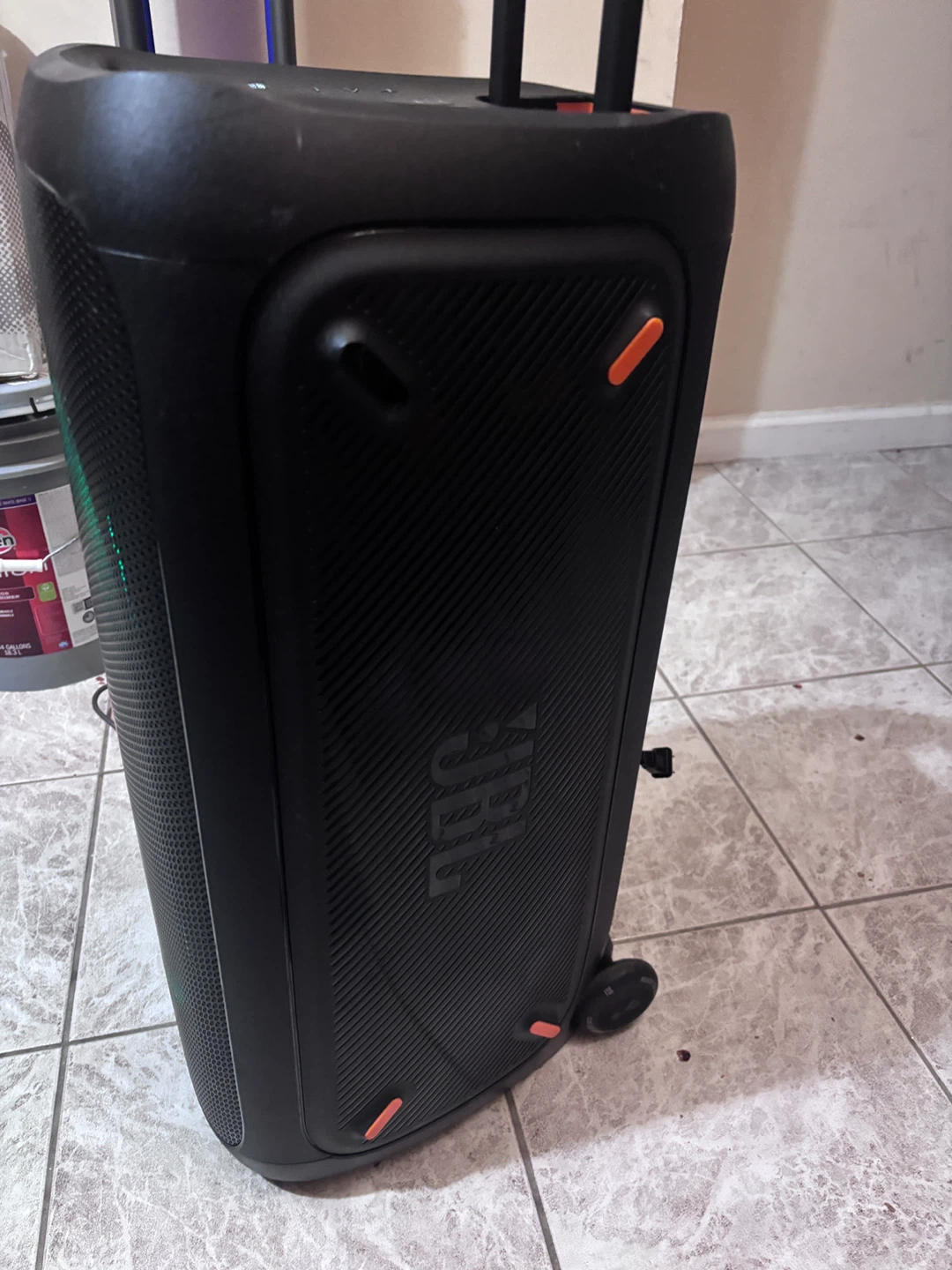 Selling a JBL PartyBox 310 This portable speaker is perfect for parties or just enjoying music at home. It features bass boost, Bluetooth connectivity, and USB/AUX inputs. It also has a telescopic handle and wheels for easy transport
