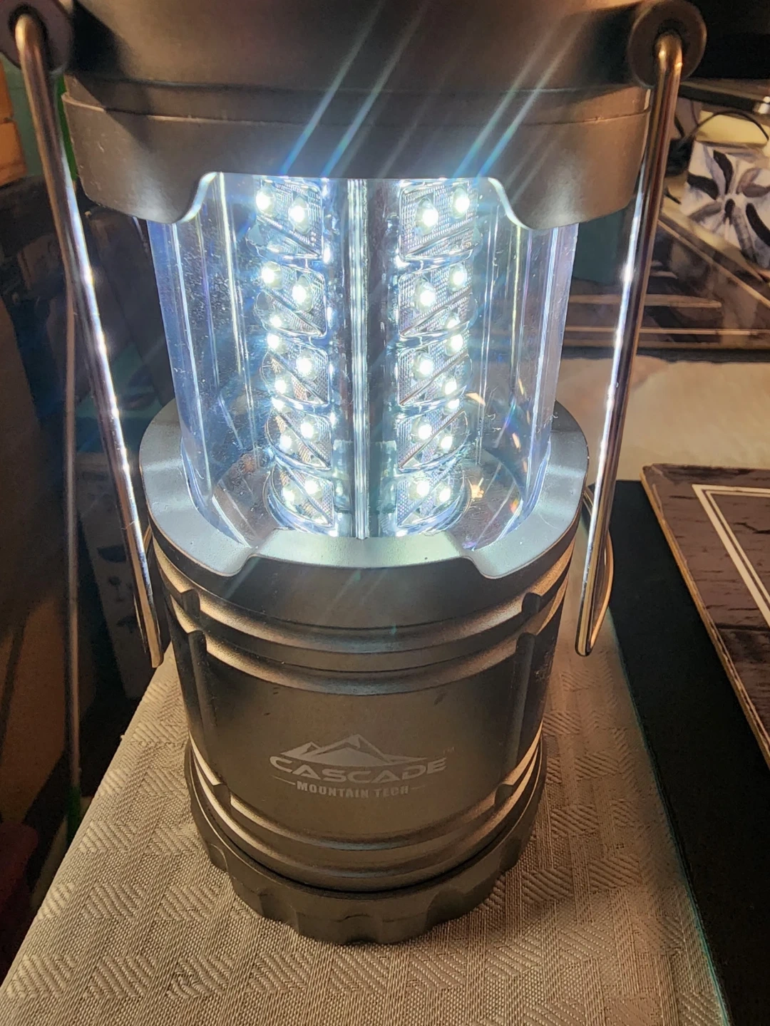 This Cascade Mountain Tech lantern uses LED lights for bright illumination. It's a portable camping essential. Collapsible design for easy storage.
