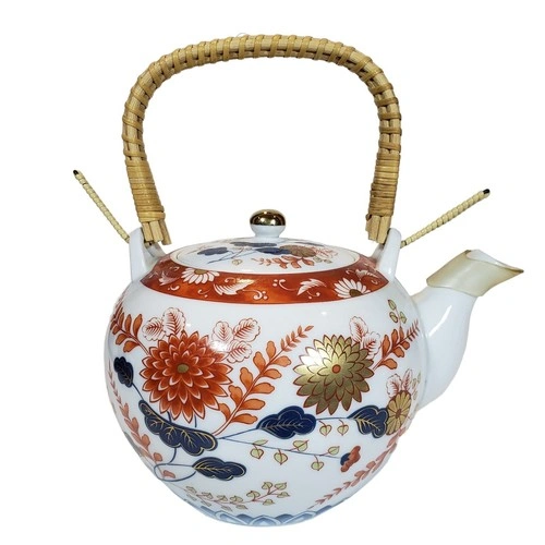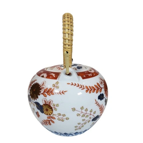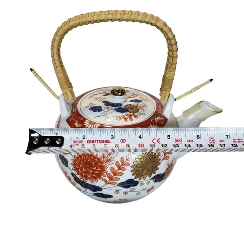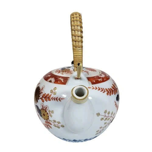 Vintage Japanese Porcelain Tea Set w/ Wicker Handle