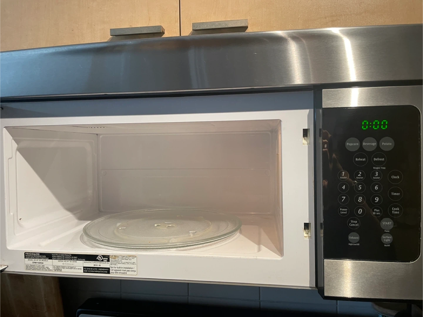 This used Frigidaire microwave, with stainless steel finish, is perfect for any kitchen.