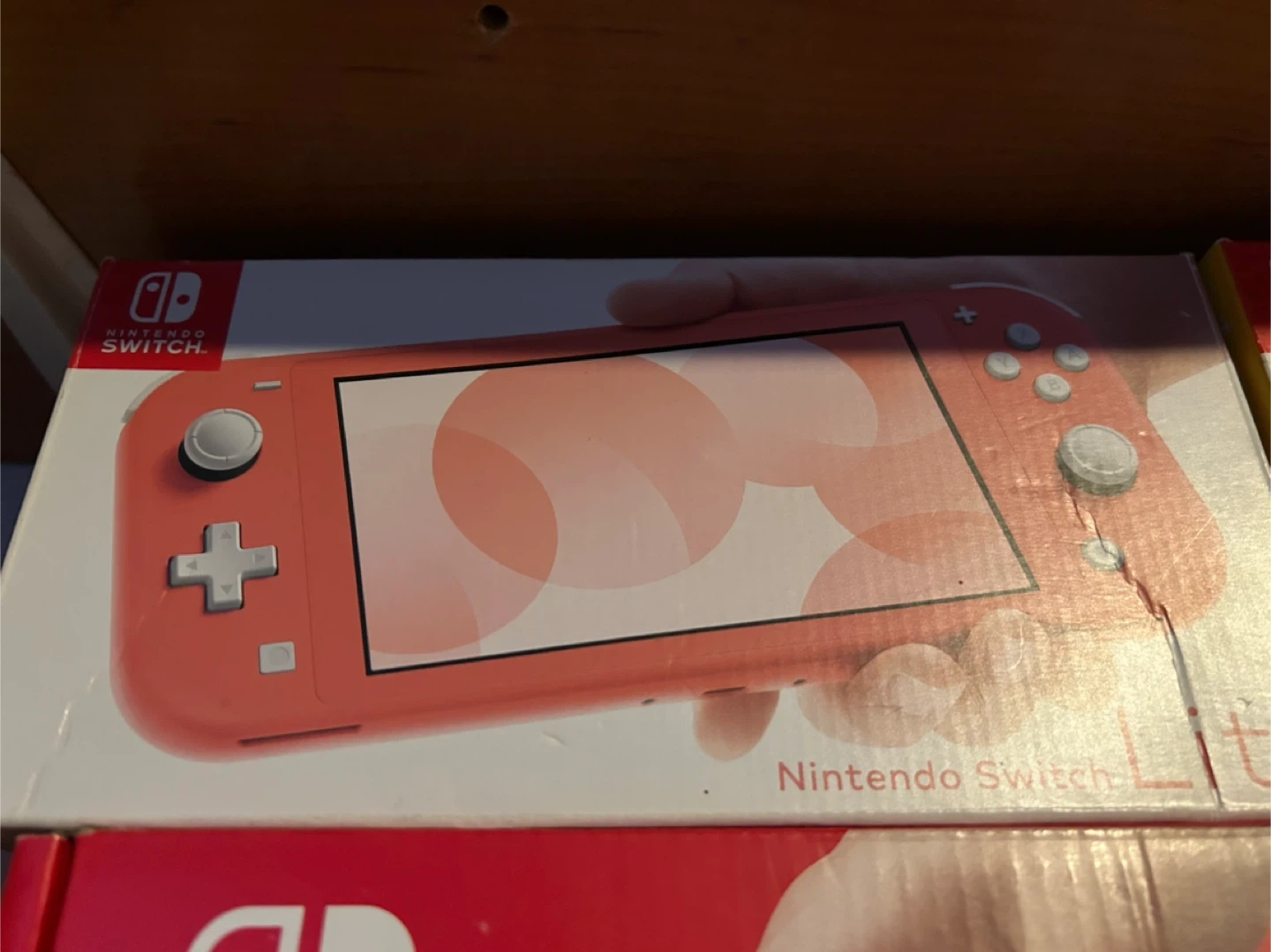 This is a Nintendo Switch Lite in Coral color. It's a handheld gaming console. Includes original box.