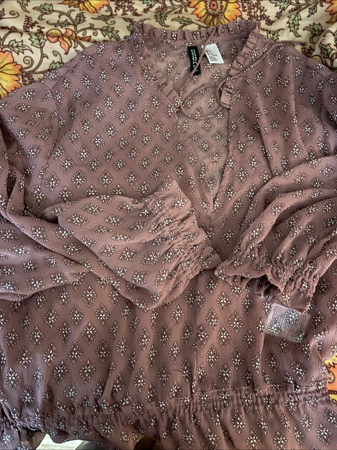 Cute H&M Divided blouse in a size medium! It has a lovely pattern and would be great for layering or wearing on its own. In great condition!