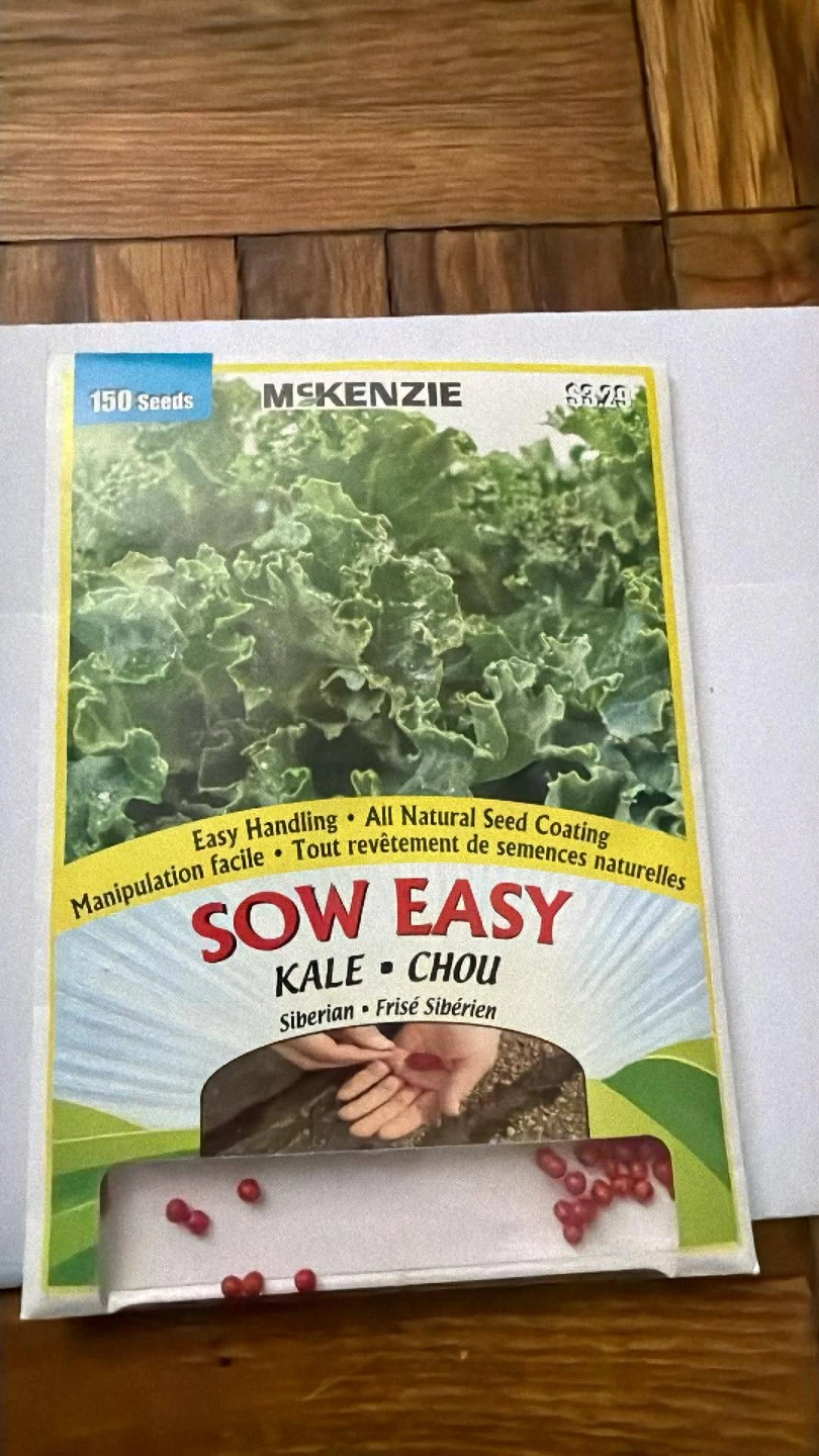 Selling a packet of McKenzie Sow Easy Kale seeds for $0.75. The packet contains 150 seeds and features an all-natural seed coating for easy handling. Get ready to grow some Siberian Frisé Sibérien kale! Original Price $3.29