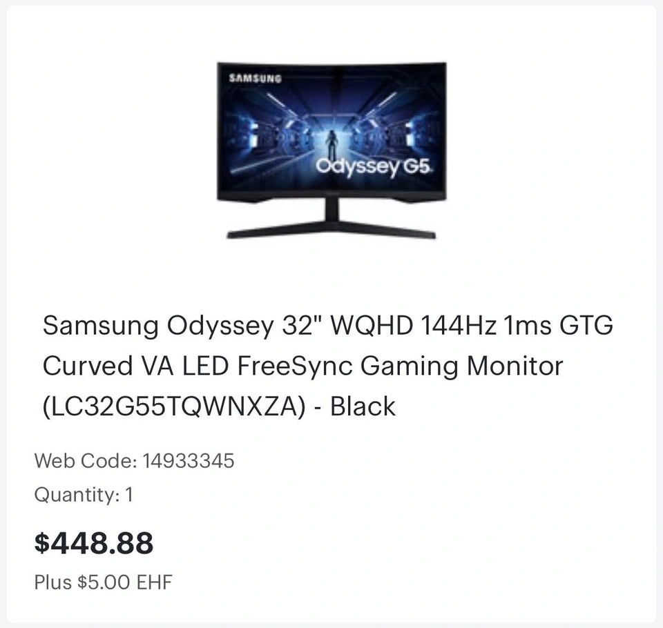 Selling a Samsung Odyssey G5 32” curved gaming monitor. Great for gaming or daily use. Bought from BestBuy.