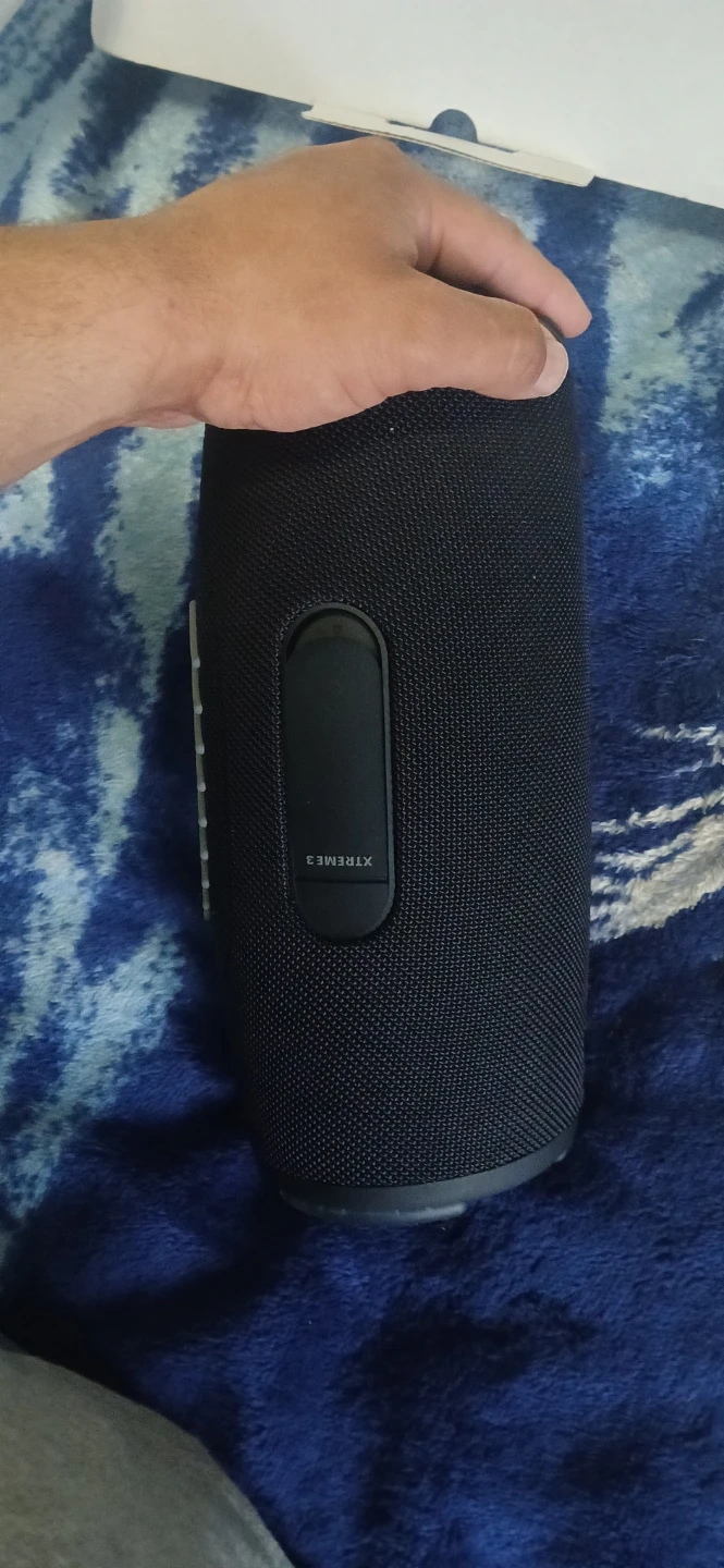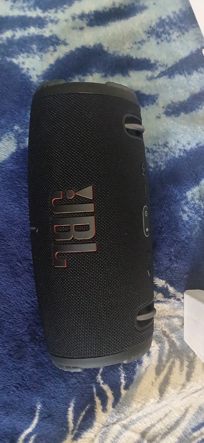 This is the JBL Xtreme 3 portable speaker. It's waterproof and dustproof, ready for any adventure! Bluetooth connectivity makes it easy to stream your music anywhere.