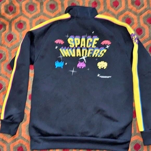 Stylish black track jacket featuring vibrant yellow and blue accents. Unique design on the chest and sleeve. This is still in brand new condition. Men's XL. It is quite thick and warm. Pick up Yonge & Sheppard.