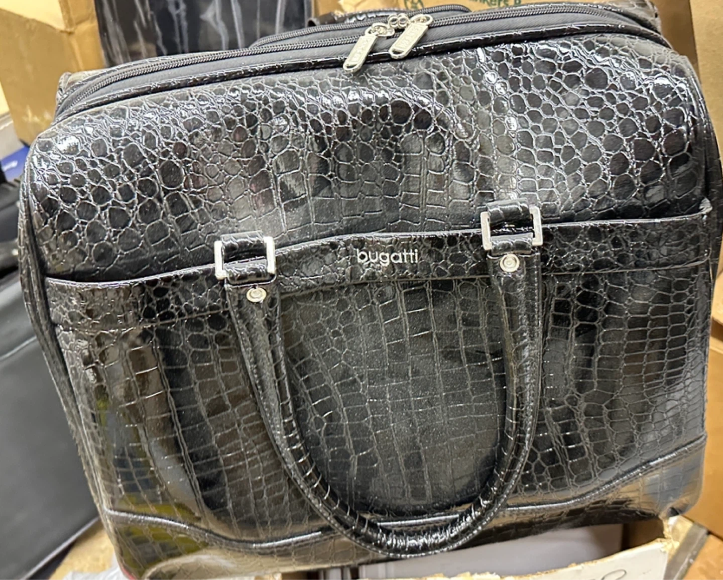 Bugatti Black Croc-Embossed Leather travel bag with wheels