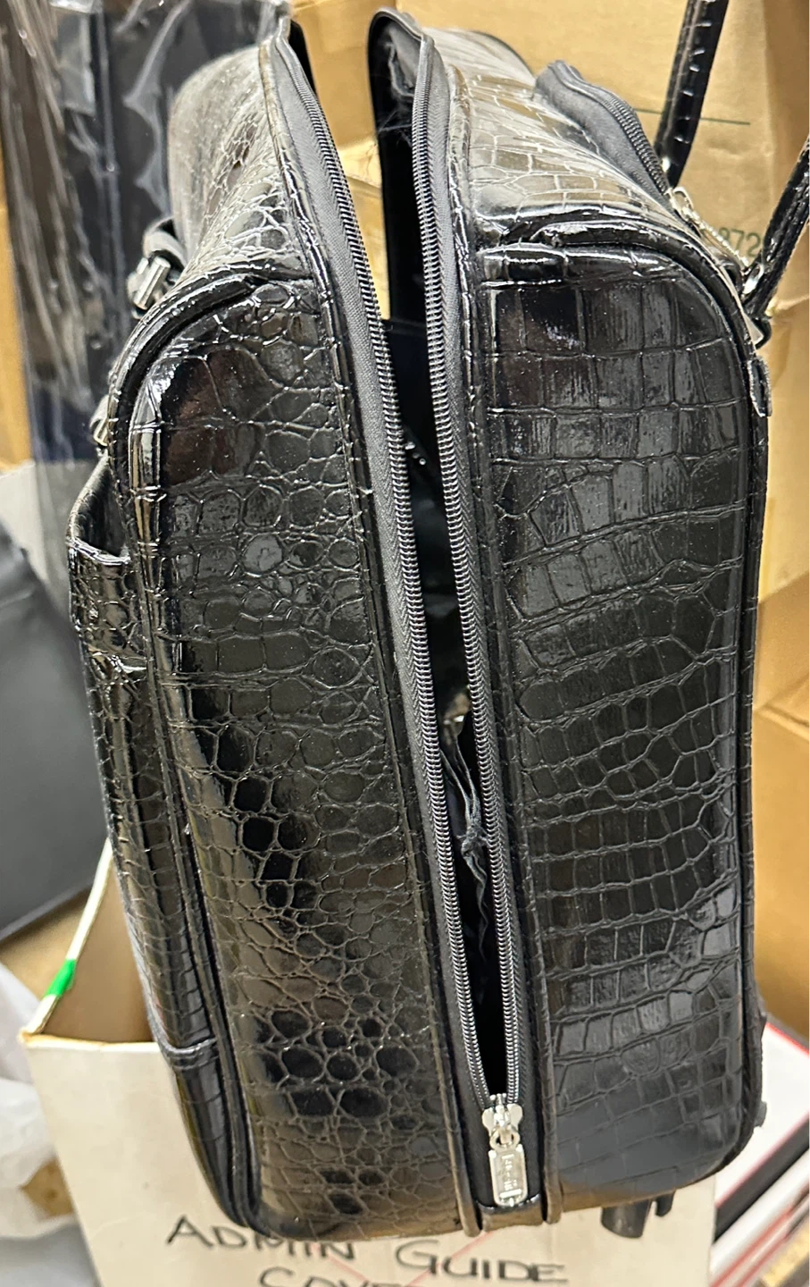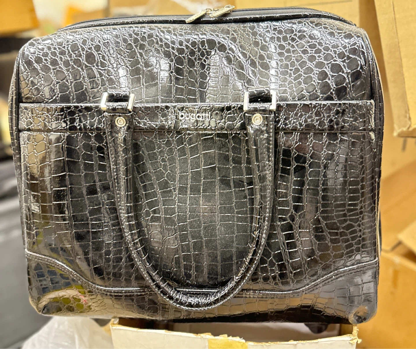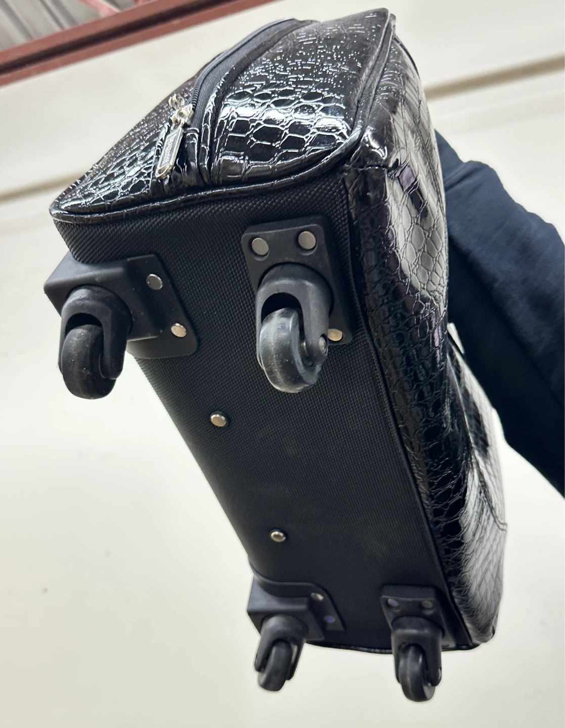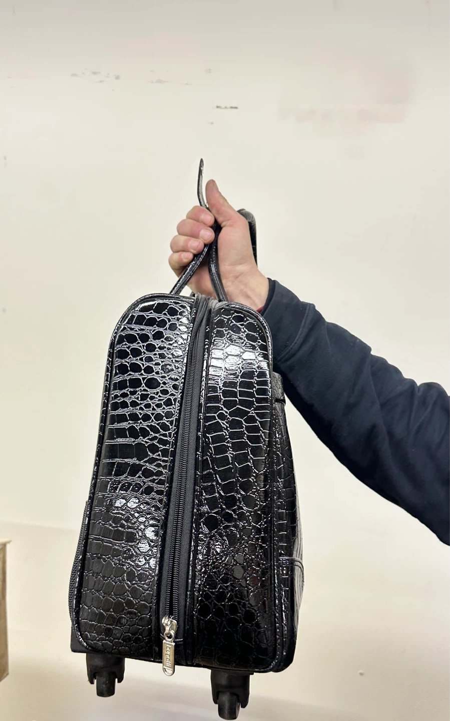 Bugatti Black Croc-Embossed Leather travel bag with wheels