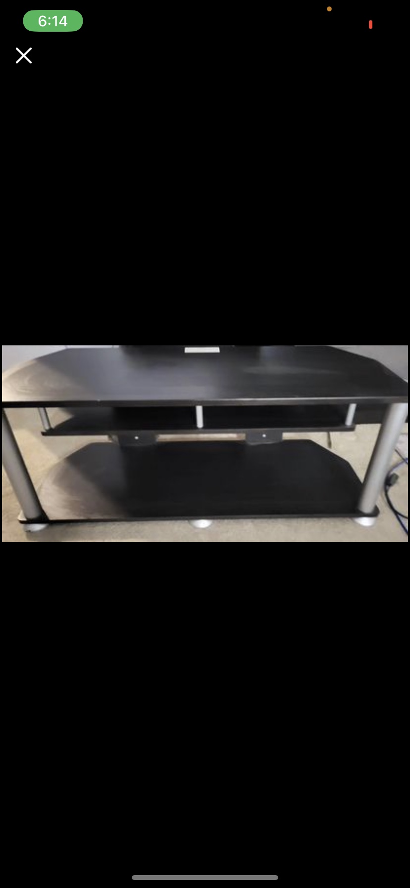Black TV stand with a shelf underneath. Small scratch on edge but otherwise in great condition! Approx 43 x 16 in