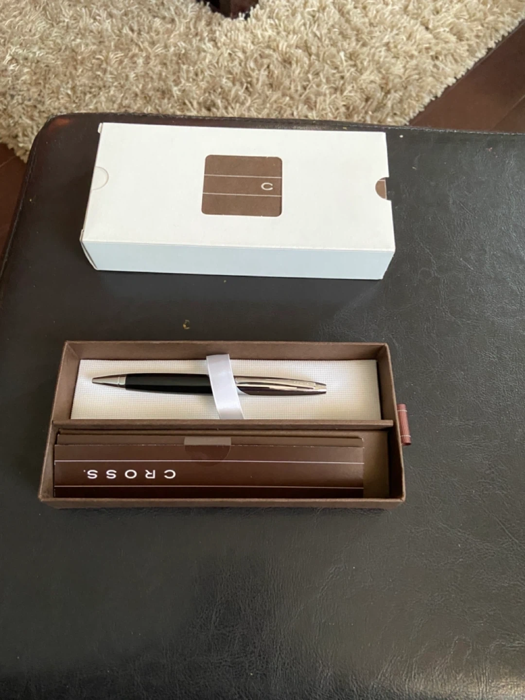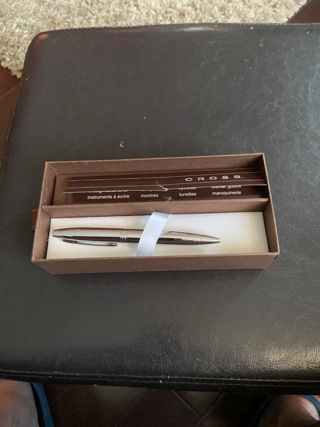 It's a classic Cross ballpoint pen, presented in its original box. This pen features a sleek metallic finish. It's a timeless writing instrument.7 available