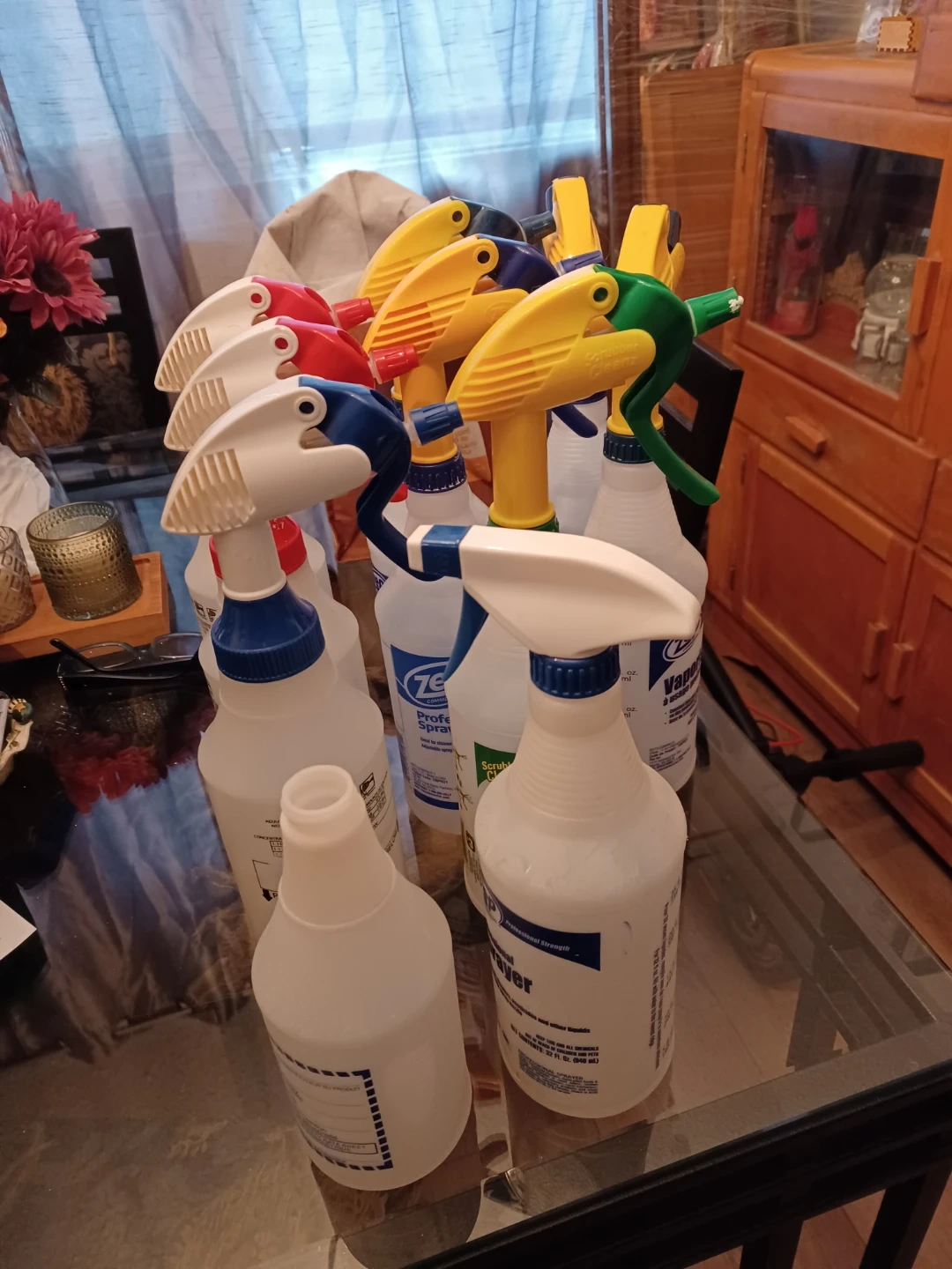 Selling a collection of professional strength sprayer bottles. They come in various colours: white, blue, red, yellow and green. They are in good condition and ready to use!