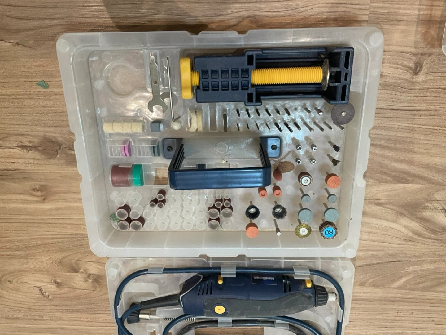 Selling a Mastercraft rotary tool kit. It comes with a variety of attachments and accessories, all neatly organized in a clear plastic case. This tool is perfect for various DIY projects and tasks around the house