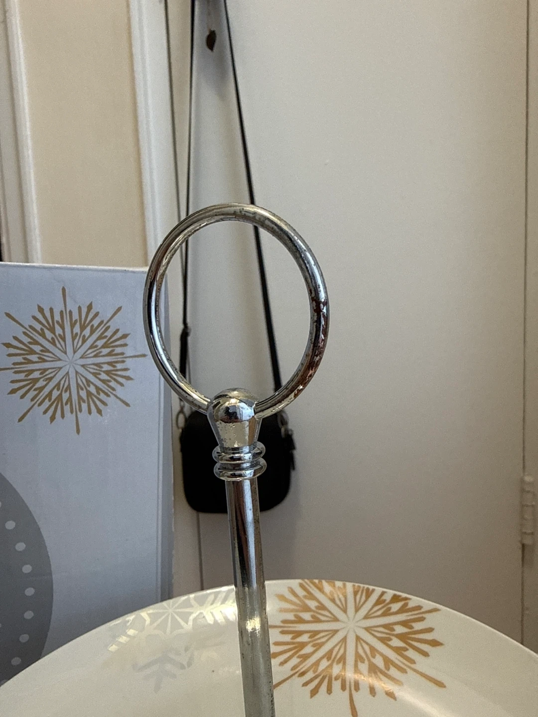 This is a two-tier platter stand with a snowflake design. It comes with the original box. Great for serving snacks or desserts!