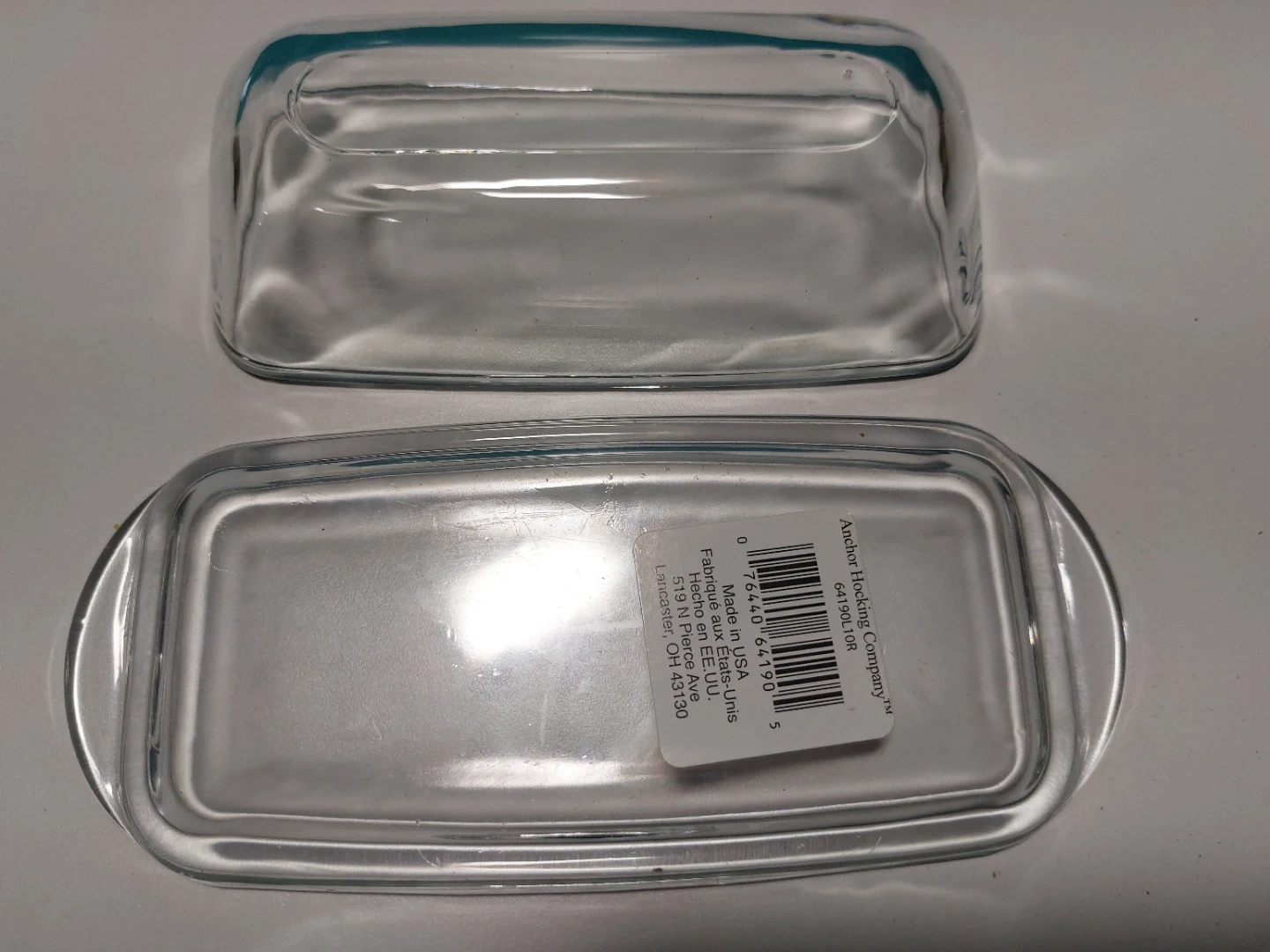 $10 obo. Selling a clear glass butter dish from Anchor Hocking. It's in great condition and ready for your kitchen! Made in the USA