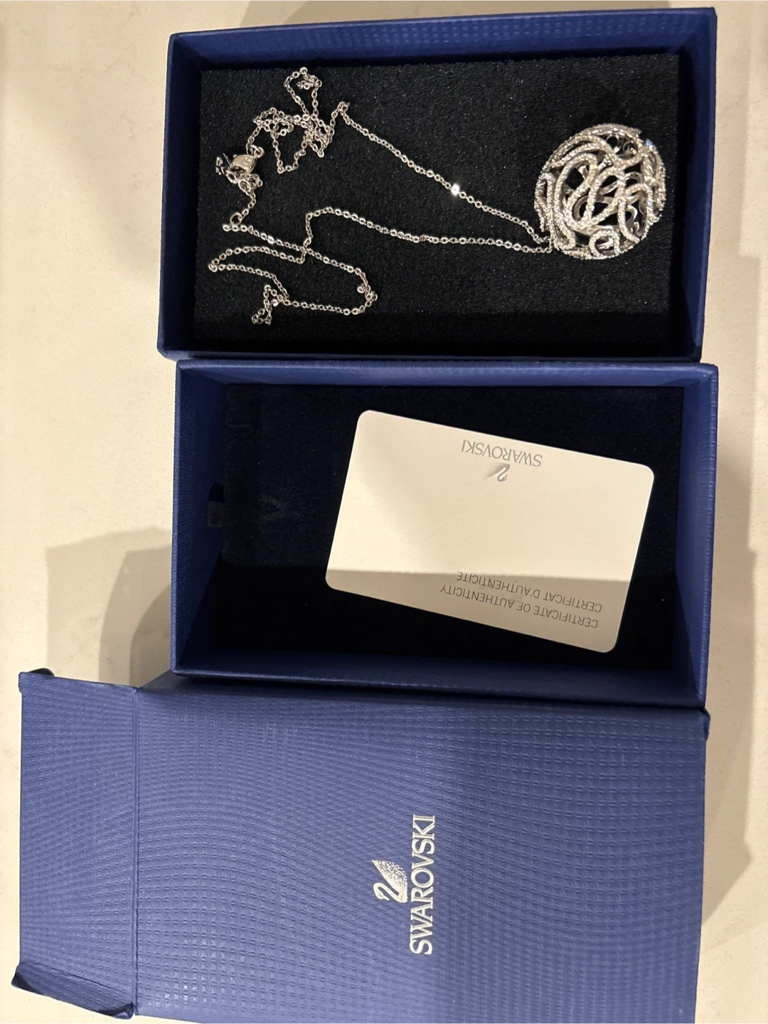 Selling a beautiful Swarovski CRY/RHS pendant, model number 1121110. It comes in its original box with a certificate of authenticity. The pendant measures approximately 60/3x3 cm. It's a stunning piece!
