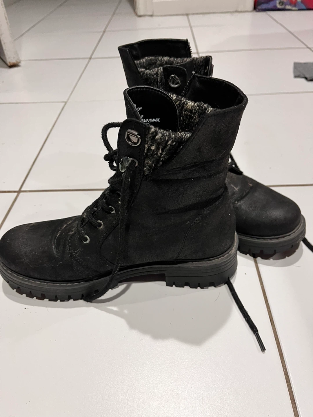 Selling a pair of black boots in size 7.5M. The zipper is just for show, it doesn’t zip all the way down. Has great traction on snow/ice. Not waterproof.