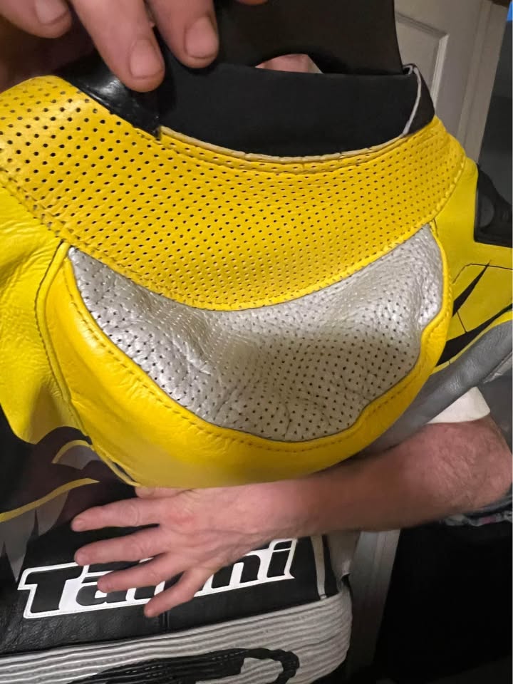 Vintage RS-Taichi Leather Motorcycle Perforated Racing suit -one piece-Size 56 European - worn once and has been in storage. Like new!