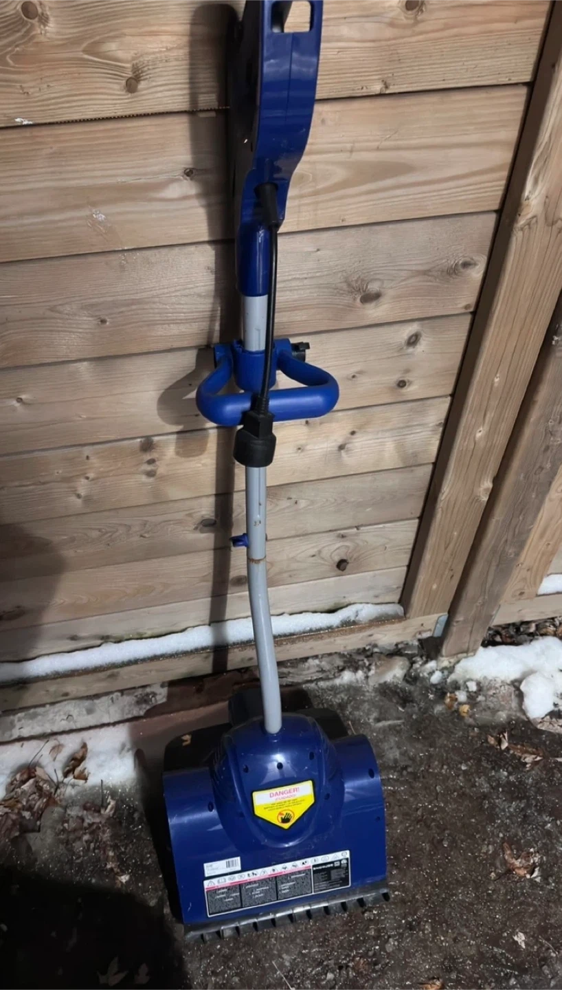 Snow Joe 10 Inch corded electric snow shovel. It's in great condition and ready to help you clear those snowy walkways and driveways this winter! It's lightweight and portable, making snow removal a breeze.