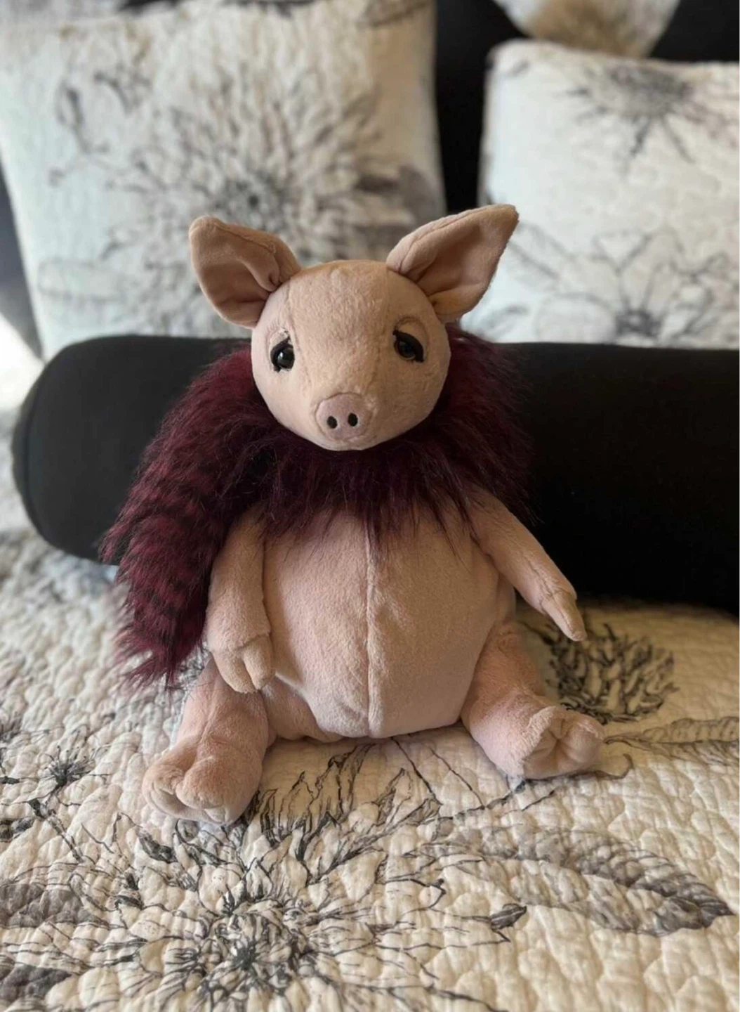 Jelly cat Plush Pig Toy with Faux Fur scarf