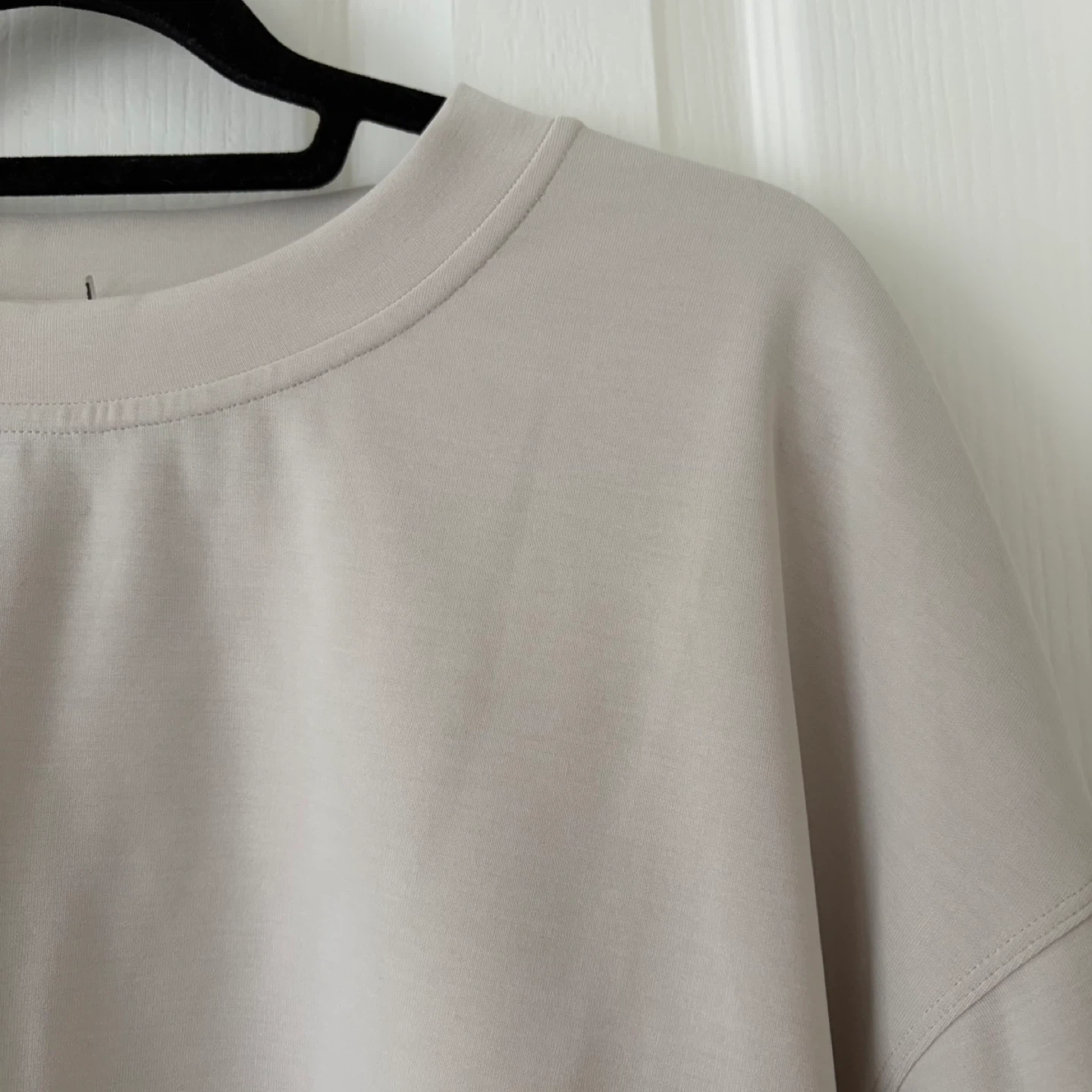 Super soft! Just the right oversized-but-not-overwhelming fit. Great wardrobe staple that goes with anything. Never worn. Just removed the neck tag