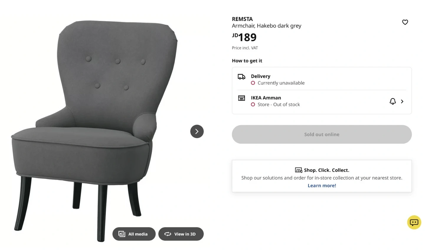IKEA REMSTA Armchair - Hakebo dark grey