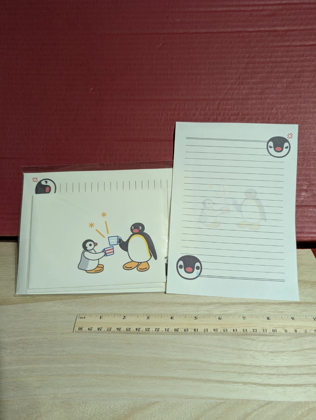 Cute Pingu themed stationery set with lined paper and envelopes. Features Pingu characters and fun designs. Perfect for sending notes or letters!