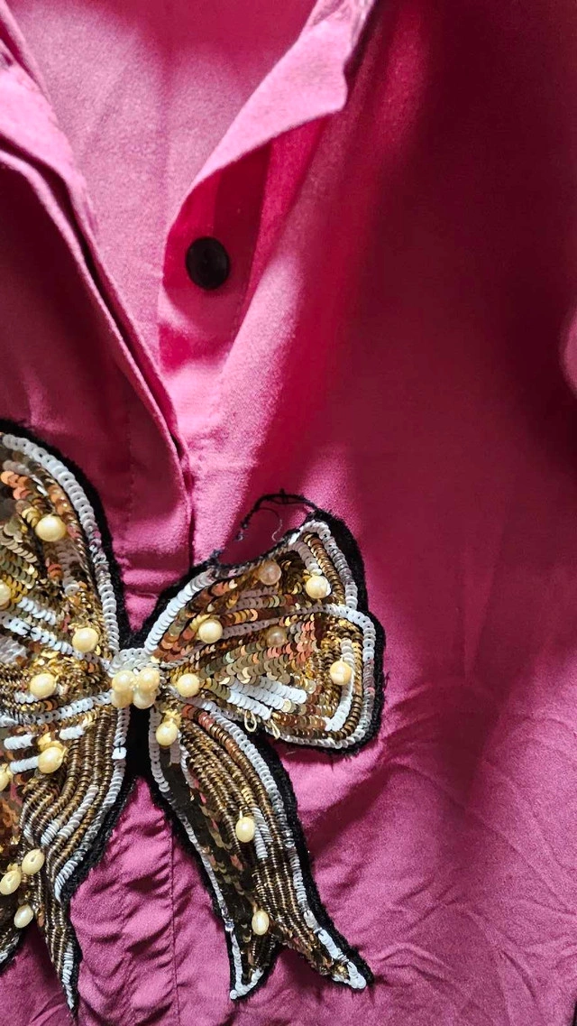 This butterfly embossed kurti in size 40 is a unique and eye-catching piece! The kurti features a distinctive butterfly design, adding a touch of whimsy to your wardrobe. Please be aware that it is in used condition.