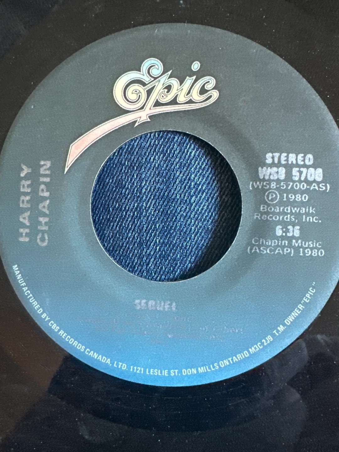 This is a 7-inch (45rpm) vinyl single by Harry Chapin, featuring the song "Sequel" and “I Finally Found it Sandy” It's from the Epic label, released in 1980. Manufactured by CBS Records Canada.