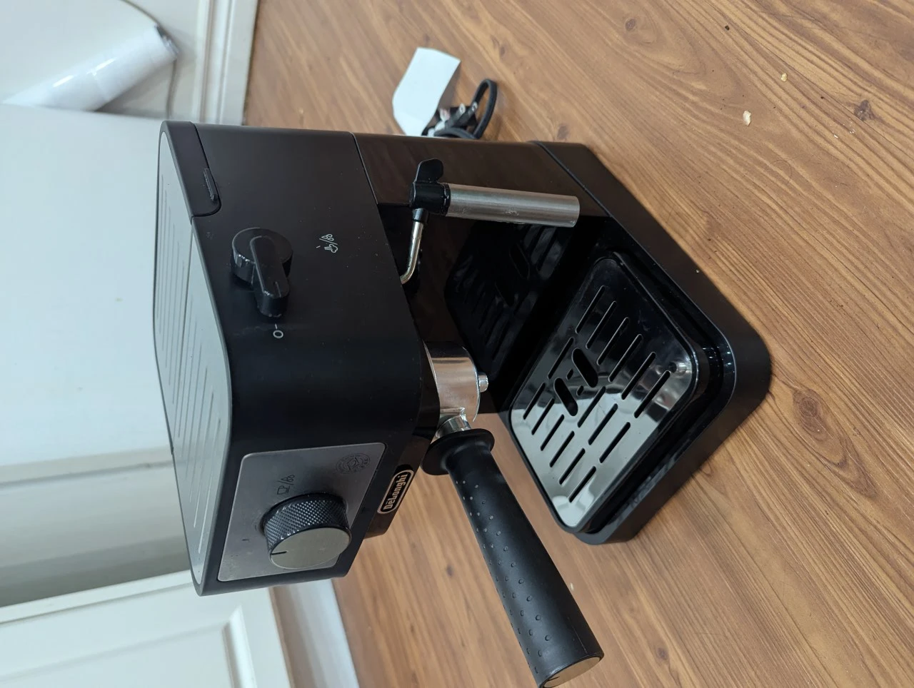 Selling a used DeLonghi Stilosa espresso and cappuccino maker. It's in fair condition and comes with the original box. Perfect for making delicious coffee at home!