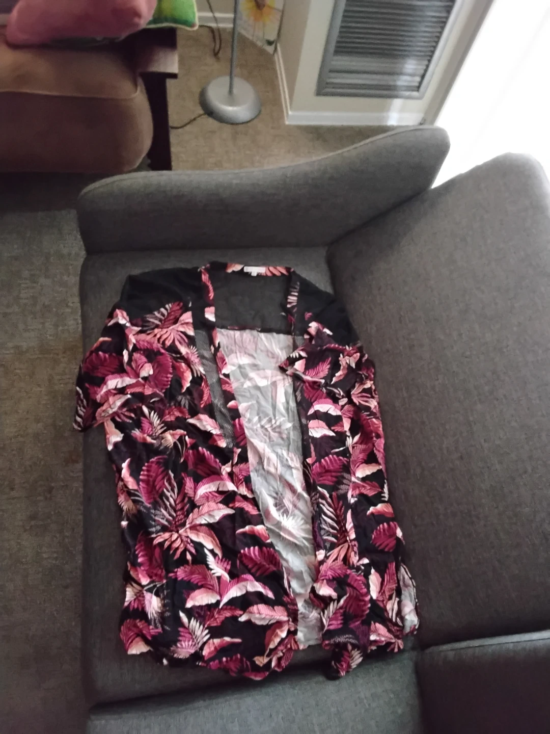 Buy & SellEveryday Sunday Floral Kimono CardiganEveryday Sunday Floral Kimono Cardigan$7This is an Everyday Sunday kimono cardigan with a bold pink and black floral print. It's a size G/TG L/XL. Lightweight fabric.ConditionLike newWHERE TO MEETCheck LocationView MapSELLERverifiedJoanne DDundas St851 review0 chats·0 favorites·12 viewsSEND CHAT TO SELLERHi Joanne D! I’m interested in your listing.Hi Joanne D! I’m interested in your listing.Get the Karrot app to chatSign In to chat