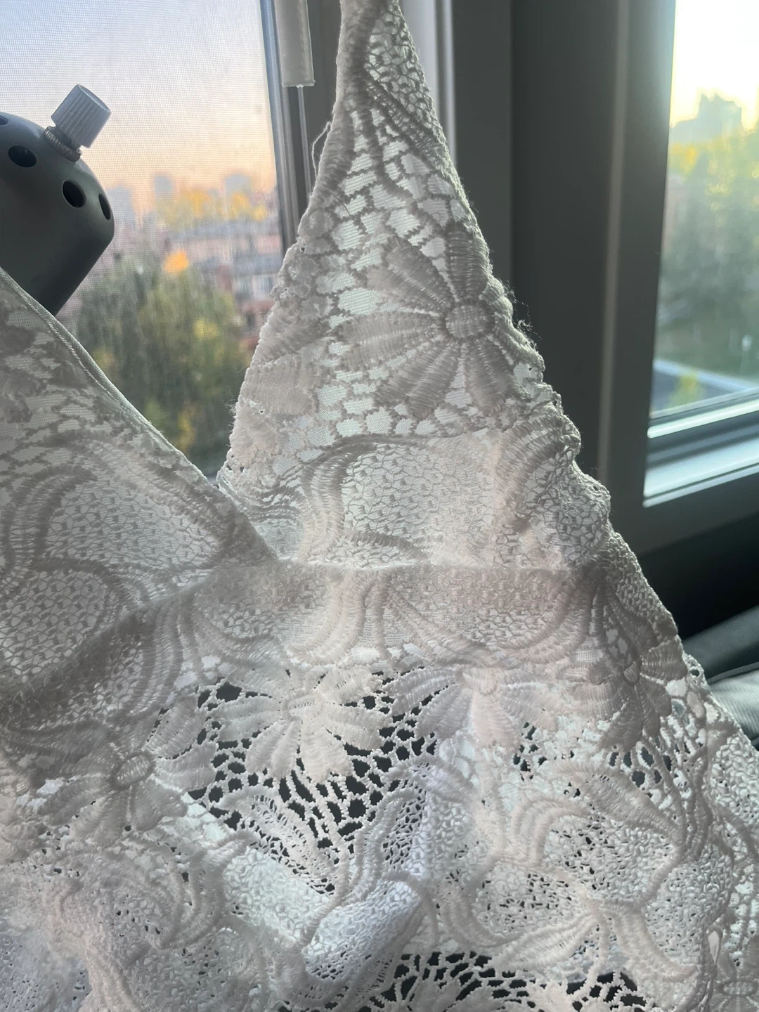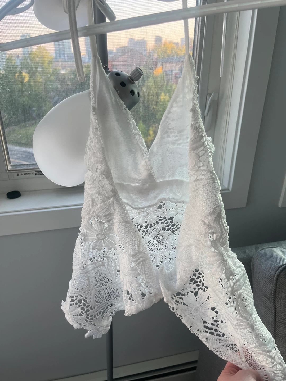 Selling a cute white lace halter top! It's in great condition and would be a lovely addition to your wardrobe. The lace detailing is really pretty and makes it perfect for a special summer event, layering or wearing on its own. Super fun stylish piece. It’s a size small.