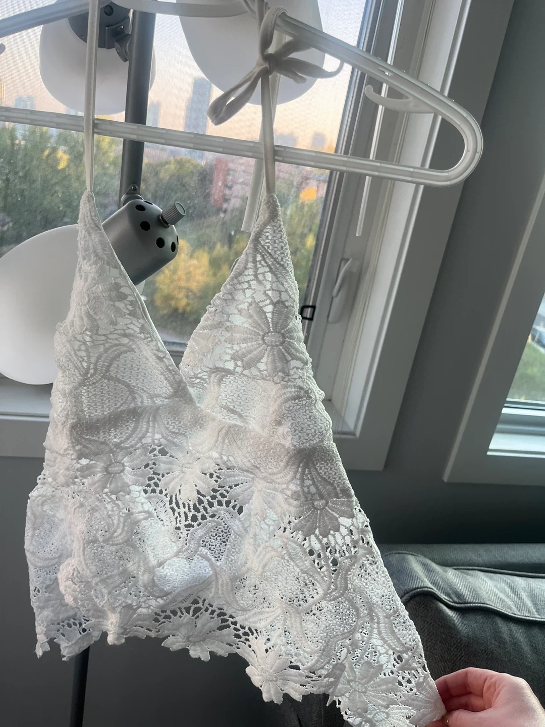 Selling a cute white lace halter top! It's in great condition and would be a lovely addition to your wardrobe. The lace detailing is really pretty and makes it perfect for a special summer event, layering or wearing on its own. Super fun stylish piece. It’s a size small.