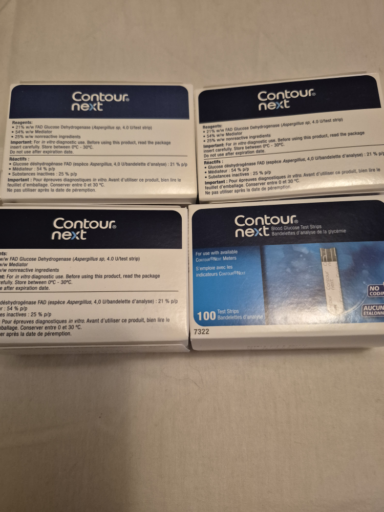 Selling boxes of Contour Next blood glucose test strips. They are for use with Contour Next meters. Each box contains 100 test strips.$15 each box