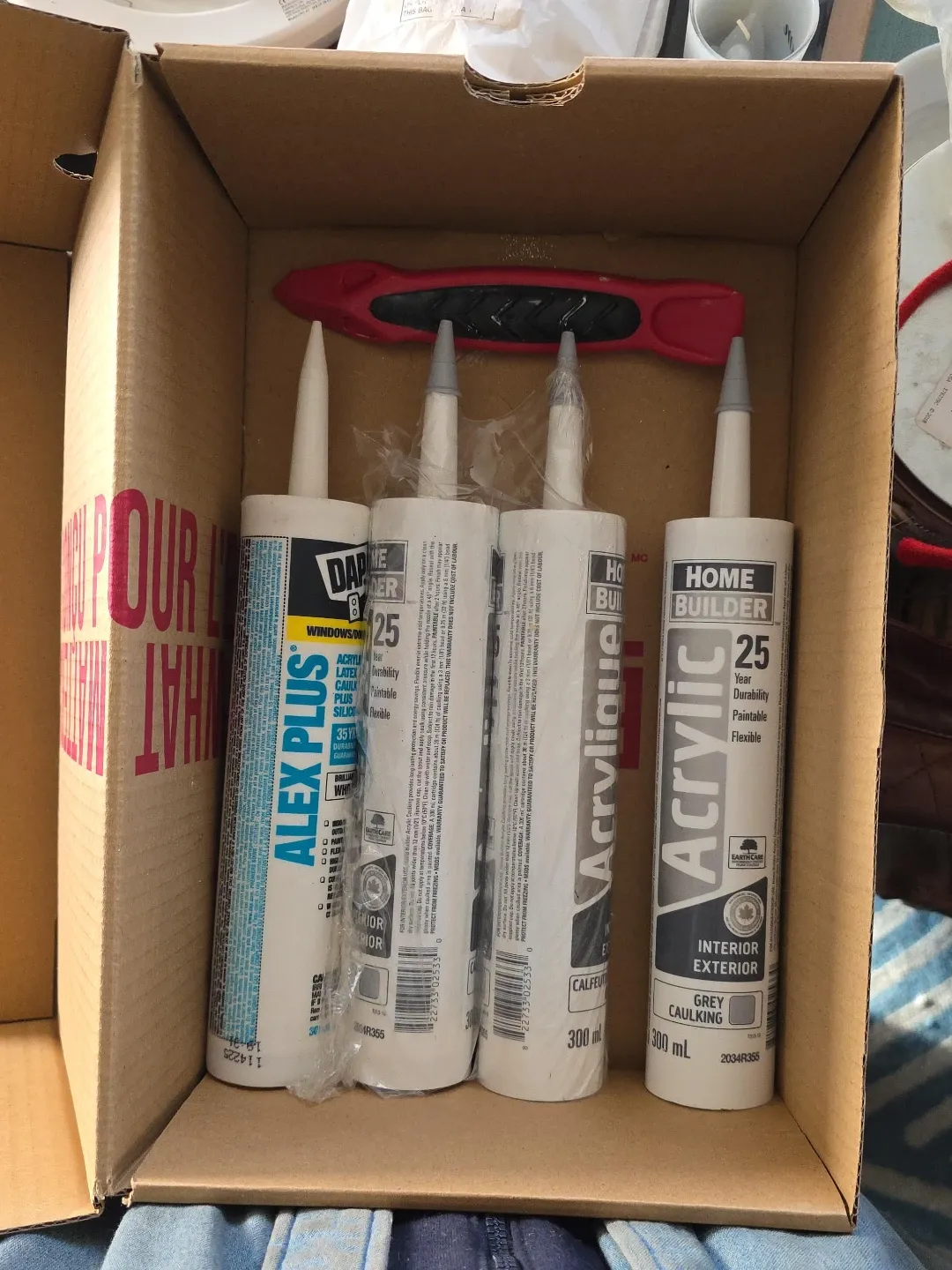 Selling a box of brand new caulking tubes! Includes DAP Alex Plus and Home Builder Acrylic caulk. Perfect for interior and exterior use.