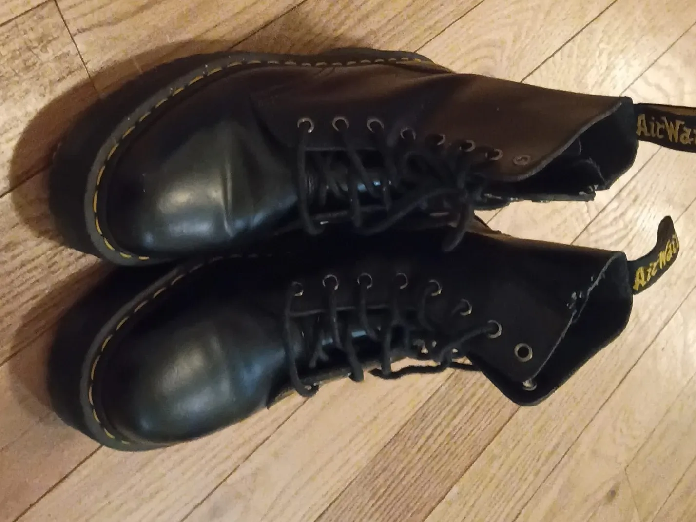 Selling a pair of Dr. Martens black leather boots. They're in good condition and ready for a new home!