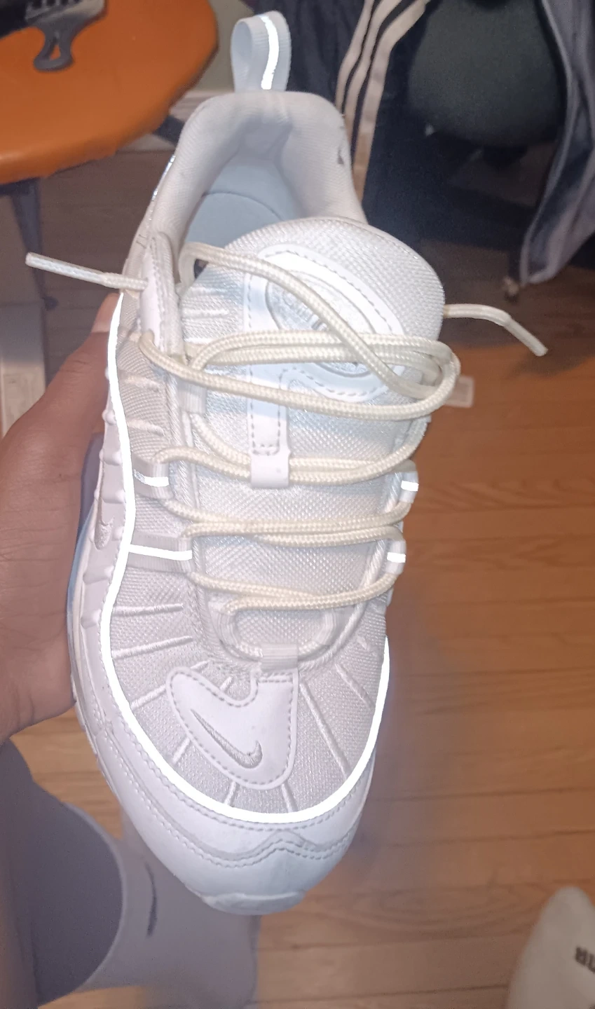Selling a pair of Nike Air Max 98 sneakers size 8, in white. They're in good condition and ready for a new owner!